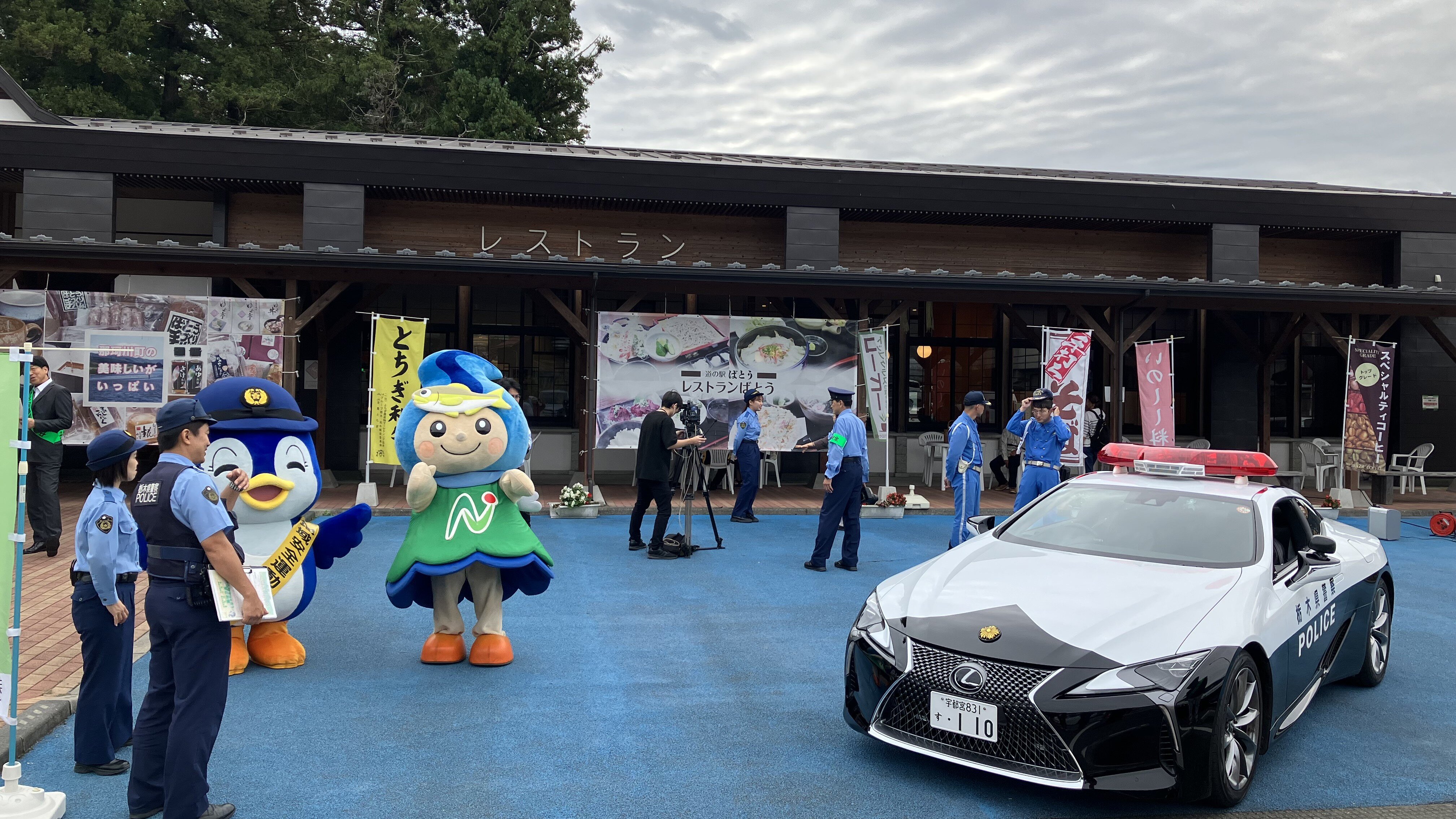 また展示されてたレクサスパトカーと共に、県警マスコットのルリちゃん、町のイメージキャラクターのなかちゃんも、来場した老若男女に対して優しい笑顔で出迎え、「防犯」に一役買っていたことは言うまでもありません。