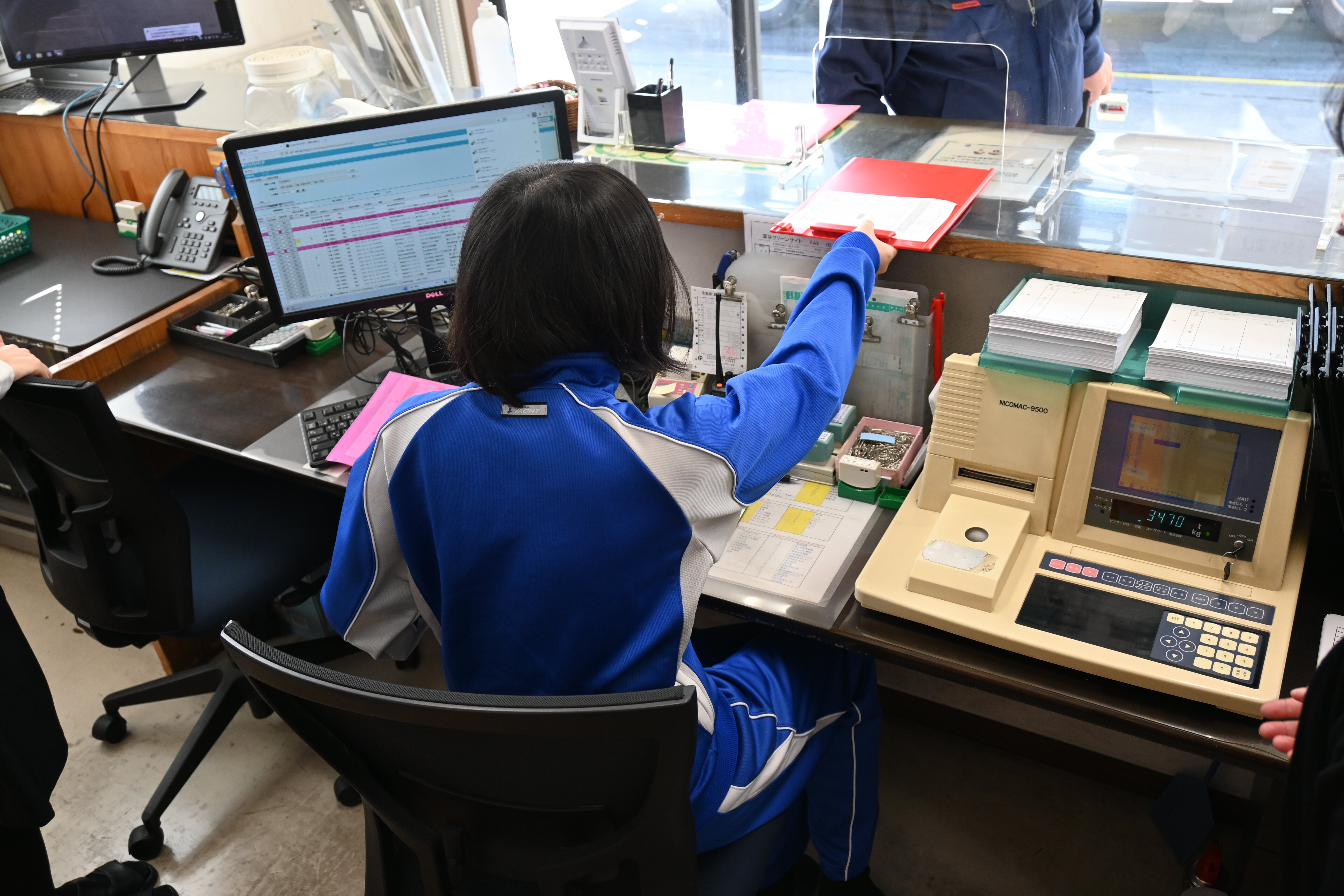 実際に計量器を操作し、お客様には伝票をお渡しします。