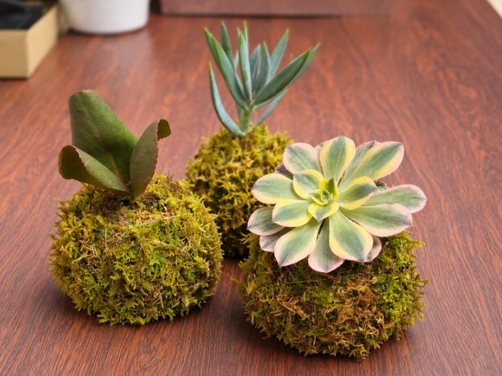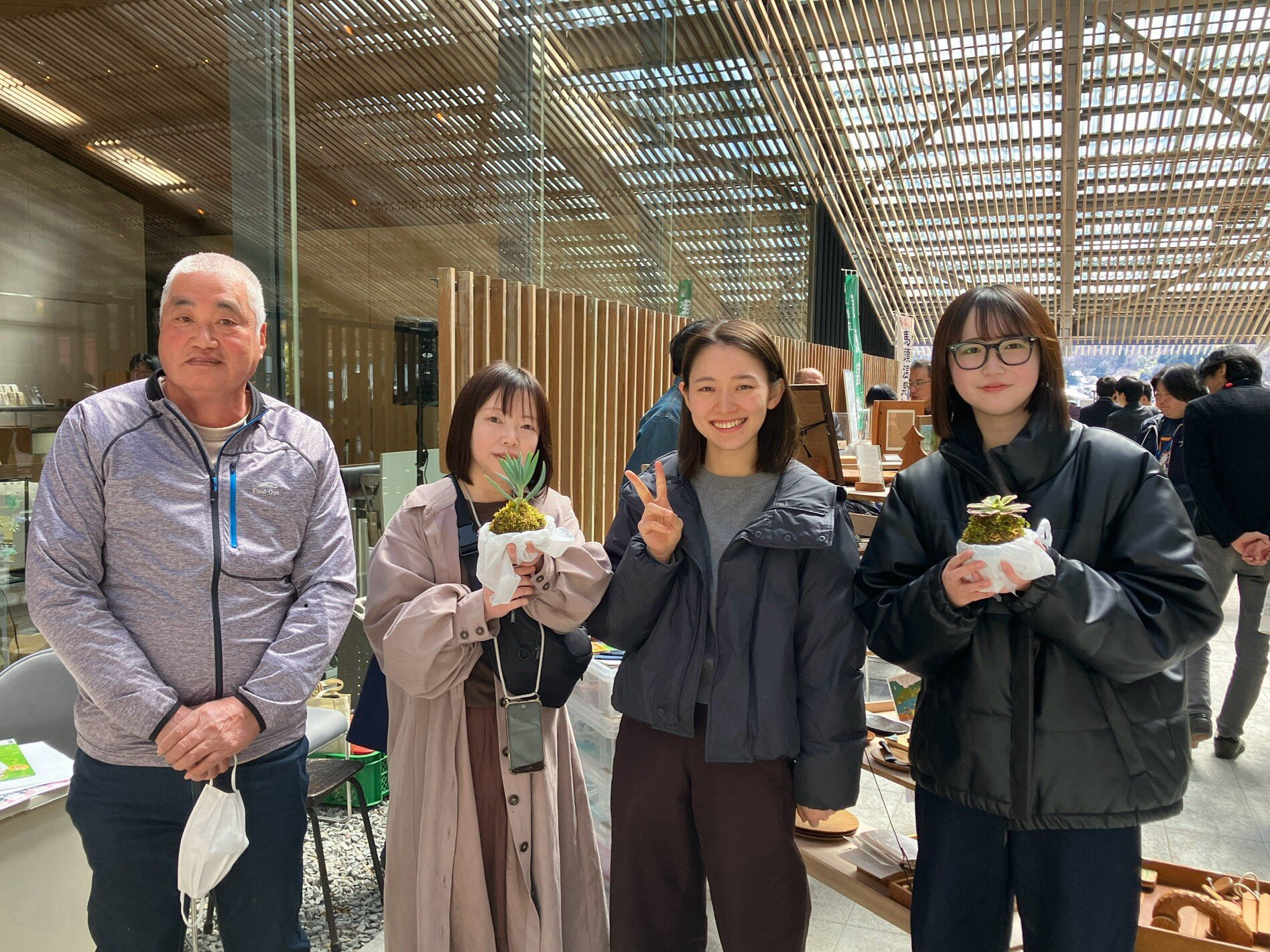 こけだまづくり体験では、職人の天生目優さんに教わりながら、好きな植物を選び、その根元を苔で包んで糸で丁寧にまとめていきました。私が選んだ植物は少し扱いが難しかったものの、天生目さんに手伝っていただいたおかげで、とても綺麗に仕上げることができました。一緒に参加した弊社社員のこけだまも無事に完成し、育て方についても学ぶことができました。